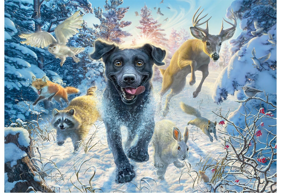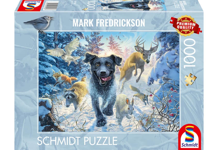 Svart labrador i snön1000 br. Schmidt